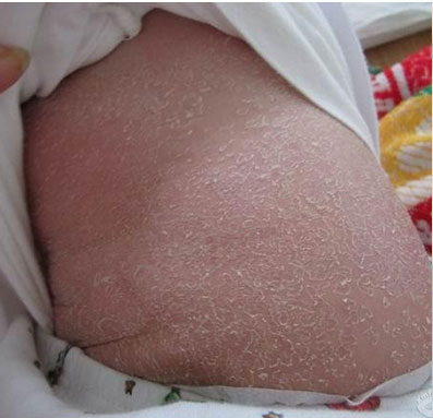 鱼鳞病主要表现为皮肤干燥、四肢伸侧或躯干部皮肤干燥、粗糙,伴有菱形或多角形鳞屑,外观如鱼鳞状或蛇皮状,通常伴有鱼鳞状脱屑。大部分患者为寒冷干燥季节加重,温暖潮湿季节缓解。易反复