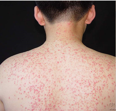 毛囊炎为整个毛囊细菌感染发生化脓性炎症。初起为红色丘疹,逐渐演变成丘疹性脓疱,孤立散在,自觉轻度疼痛。在成人主要发生于多毛的部位,在小儿则好发于头部,其皮疹有时可互相融合,愈后可留有小片状秃发斑。