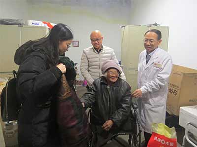 19日下午5时许,太原肤康皮肤病医院与山西晚报志愿者一同来到老人的住所,为老人送上大米、油、羽绒服等春节慰问品。老人看着新的衣服,不断地感谢志愿者,肤康志愿者表示:老人很坚强、也很乐观,在新春来临之际我们略尽绵薄之力,希望老人能过一个美好的春节。同时我们也呼吁社会各界爱心人士多关注像曹会会老人这样的弱势群体,尽我们所能,让他们生活的更好一些!