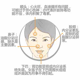 青春痘的发病是与人体脏腑息息相关的,不同部位长痘的原因是不同的,…