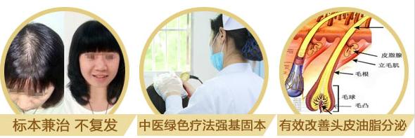 该疗法是利用纯天然药物直接渗透病灶,活化毛囊细胞代谢,改善毛乳头的血液循环,平衡头皮油脂分泌,全面激活休眠毛囊孕育新发,以达到治疗脱发的目的。