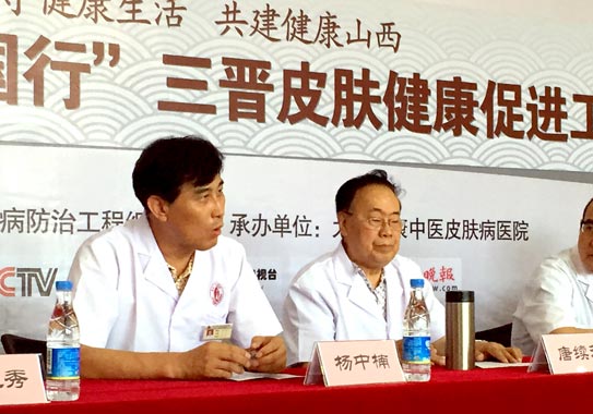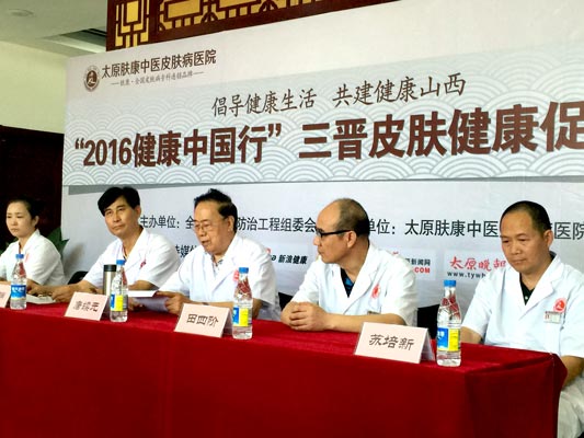 8月8日,由皮肤病防治工程组委会主办、太原肤康中医皮肤病医院承办的“2016健康中国行•三晋皮肤健康促进工程”启动仪式在太原肤康中医皮肤病医院隆重举行。皮肤病防治工程组委会领导、太原肤康中医皮肤病医院杨中楠、李文海院长出席了发布会并进行重要讲话。