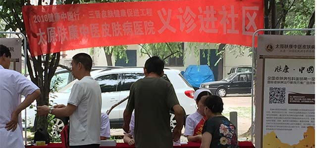 据悉,为了让更多的老百姓受益,受惠,由太原肤康中医皮肤病医院承办的“2016健康中国行·三晋皮肤健康促进工程”社区义诊活动将持续到11月份。居民也可通过拨打公益咨询热线