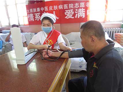 太原肤康中医皮肤病医院一直坚守我国尊老爱幼传统美德,发挥其本职责任。本次巡诊活动给老人们做的健康检查主要包括血压检查、心电图、心肺听诊等常规检查。