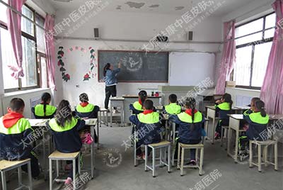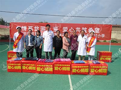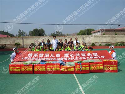 9月22日, 太原肤康中医皮肤病医院志愿者服务队携手太原电视台《生活享当当》记者,深入娄烦县赤土华村小学,与这里的贫困、留守儿童进行了一次面对面的交流,为他们带去了爱心物资与学习用品。