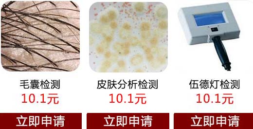 2、毛囊分析、皮肤分析检测、伍德灯检测均10.1元;