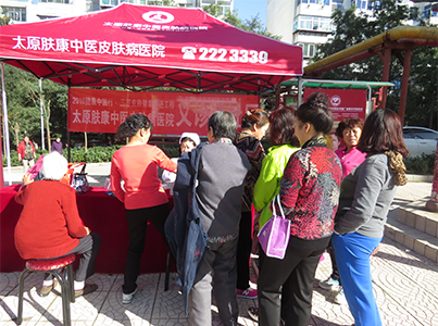 为更好地服务社区群众,增强社区居民对健康的关注, 10月8日,太原肤康皮肤病医院义诊服务队及中医医生走进五龙口三社区免费义诊,五龙口三社区是太原肤康皮肤病医院义诊进社区活动开展以来第十二个义诊社区。