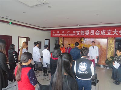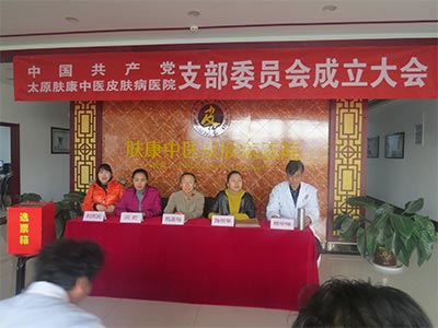2016年11月30日下午,在桥东街道工委副书记赵喜梅、党办医生路丽琴、迎宾社区医生兼书记闫莉及副书记刘家爱的共同见证下,中共太原肤康中医皮肤病医院支部委员会正式成立。