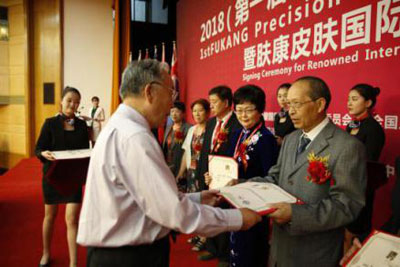 本次大会的另一大亮点就是皮肤医生共同签约肤康皮肤。由肤康总院长吕忠生教授(原北大副校长)与各地多地医生签约并颁发聘书。