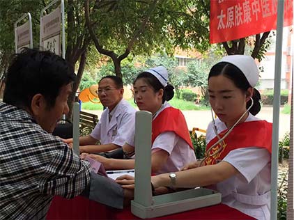 8月13日,太原肤康中医皮肤病医院志愿者服务队走进长风社区做主题宣讲及免费义诊活动,用实际行动践行2016健康中国行·三晋皮肤健康促进工程公益宗旨,切实推动社区皮肤健康促进工作的顺利进行,赢得了社区居民的一致好评。