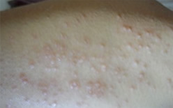 丘疹布满了大大小小的丘疹,还有点微痒,挠破的发现会很快出现一样的丘疹