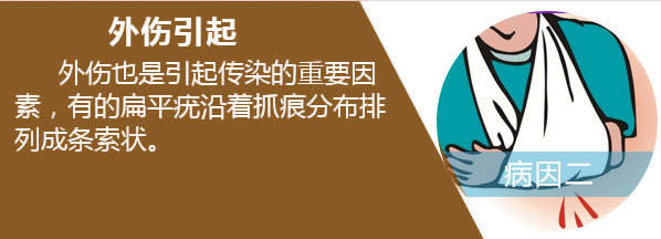 医生还表示,当局部被搔抓时,扁平疣疣体表面和正常皮肤可产生轻微的破损,这时病毒很容易被接种到正常皮肤上而产生新的疣体。