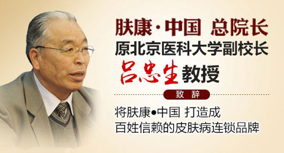 肤康·中国由北京医科大学副校长吕忠生教授担任总院长。医院斥巨资率先引进先进的医疗设备,引进皮肤病治疗新技术,吸引国内知名多地医院百余名皮肤病医生加盟,为皮肤病的诊疗品质提供了扎实的基础,赢得各级领导高度赞誉、社会各界一致好评和患者的高度认可。