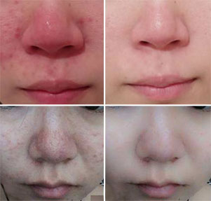 红斑初发于鼻尖和鼻翼,持续不退,并伴有红血丝、毛细血管扩张!