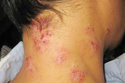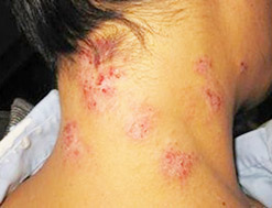 化学性、化学洗浴剂涂擦刺激性药物, 激素软膏等。