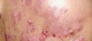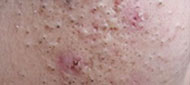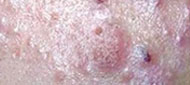 类型:结节、囊肿型痘痘集中发于下额部以下位置,皮损处密布炎性丘疹、脓包、囊肿、结节。脓包破溃处有的结痂,有的渗出液结晶,有的留下痘印。