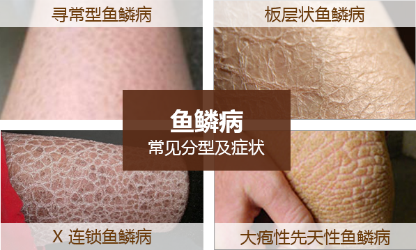 鱼鳞病是一种由角质细胞分化和表皮屏障功能异常的皮肤疾病,鱼鳞病根据发病原因可分为获得性鱼鳞病及遗传性鱼鳞病,其中以遗传性鱼鳞病较为常见(约占80%),可发于四肢及躯干部,以皮肤干燥、粗糙伴有鳞屑为特征,看上去像鱼鳞或蛇皮,中医称之为“蛇皮癣”。