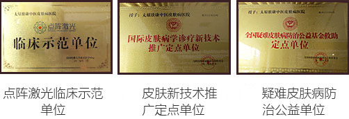 太原肤康中医皮肤病医院引进多项前沿技术,其中突出的包括“中西医结合五联理疗(痤疮)”、“汉方小分子激活疗法(脱发)”、“中西医五维净血祛癣疗法(牛皮癣)”等28项技术;针对痤疮、脱发、牛皮癣、白癜风等做全面、准确、细致、安全的诊断和治疗,确保治疗的有效、安全、不反复等。